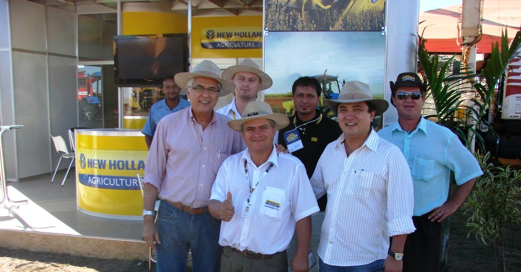 Horita e Humberto com o pessoal da Gasparetto, representantes da New Holland. Hoje pela manhã, Sélvio Gasparetto, confirmou um crescimento significativo em vendas nesta terceira edição da Bahia Farm Show e uma série de opções firmes de compra, que deverão ser confirmadas durante a semana.