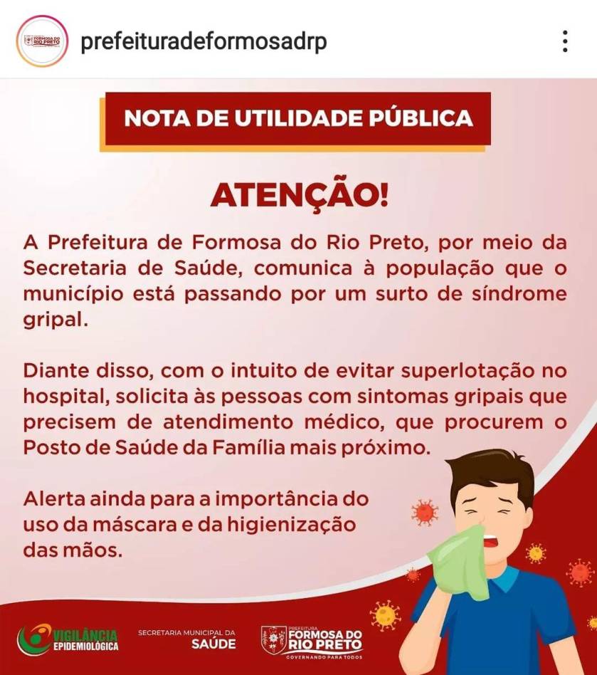Formosa do Rio Preto reconhece surto de contaminação por Influenza.