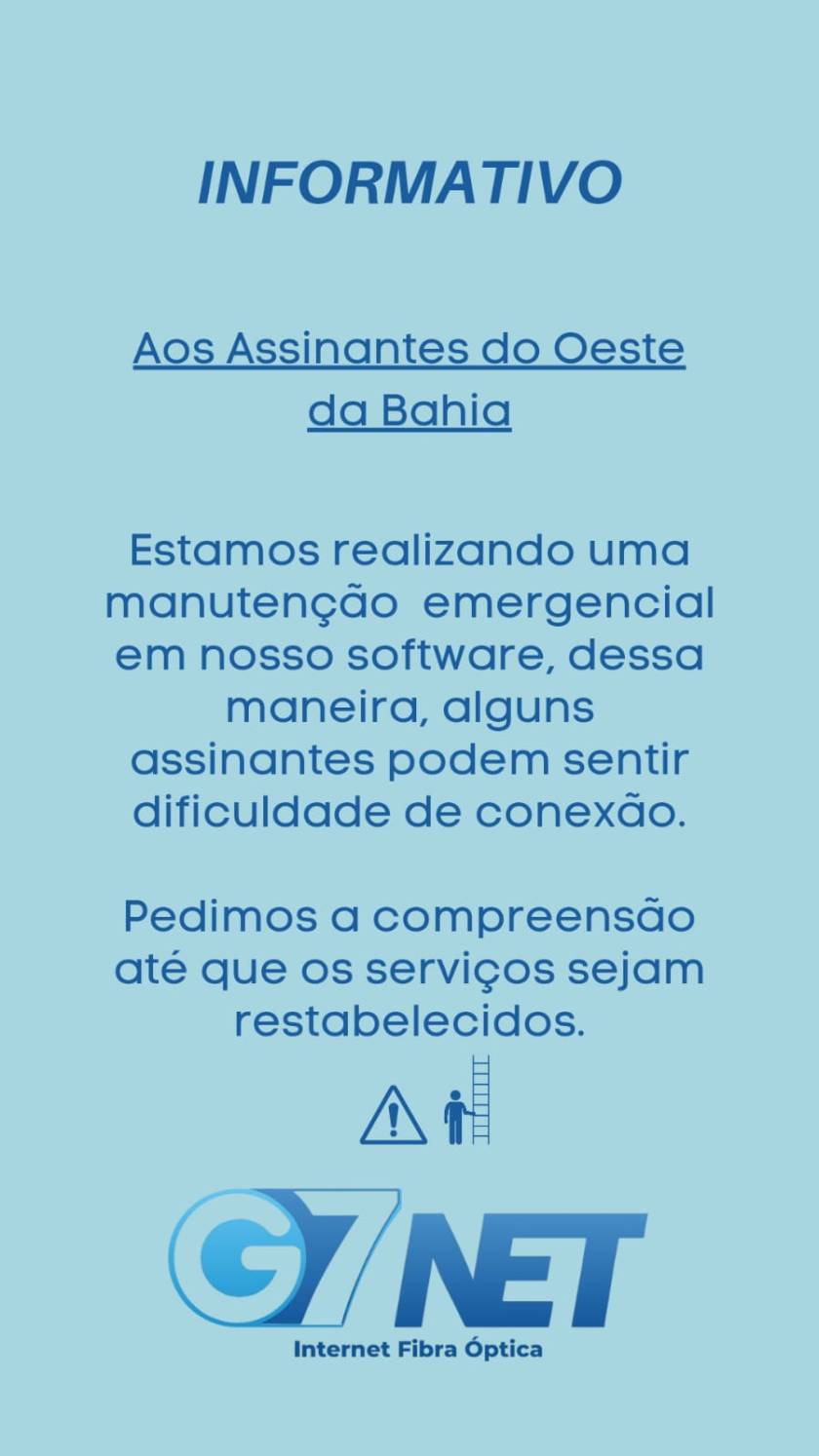Aviso aos assinantes G7Net do Oeste da Bahia