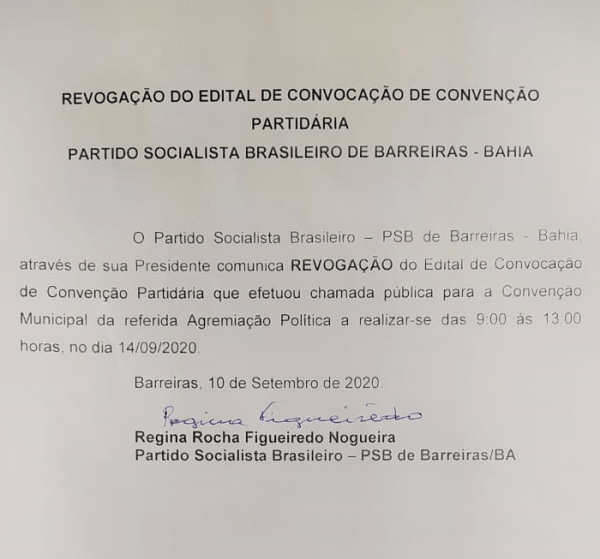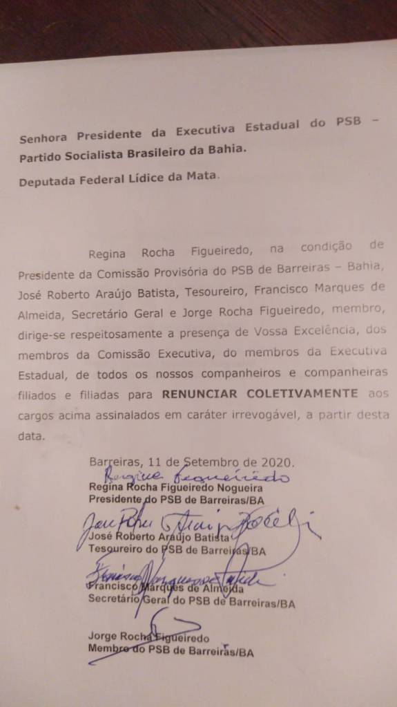 Barreiras: Comissão Provisória do PSB pede demissão em bloco