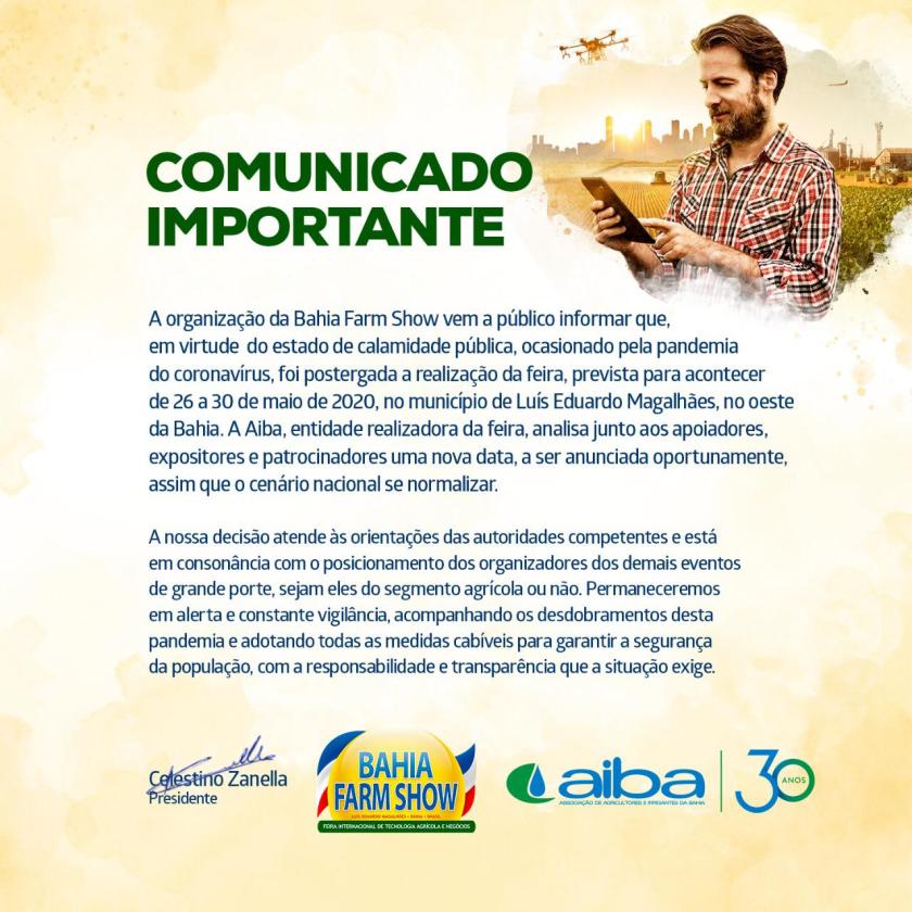 Bahia Farm Show é cancelada sem nova data marcada.