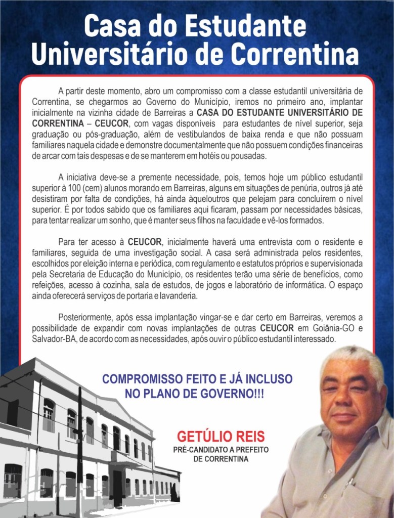 Correntina: Getúlio Reis inclui casas de estudantes universitários em programa de Governo.