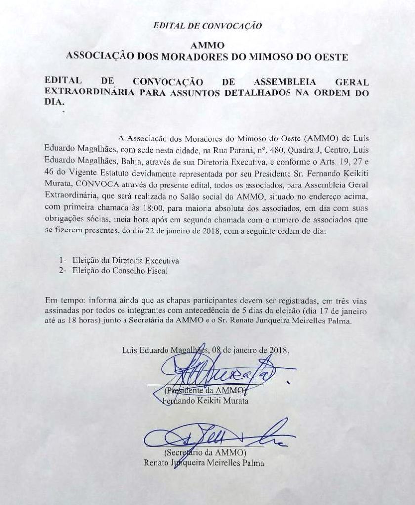 AMMO lança edital para as próximas eleições
