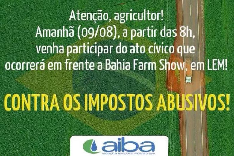 Amanhã tem ato cívico dos produtores rurais por menos impostos