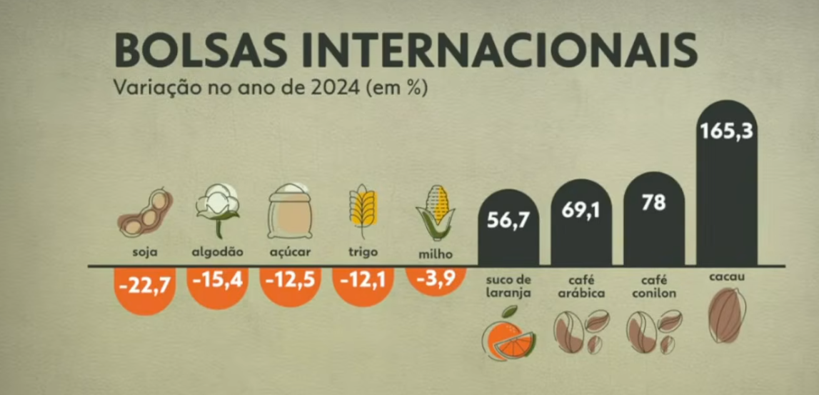 Principais alterações nas cotações agrícolas em 2024.