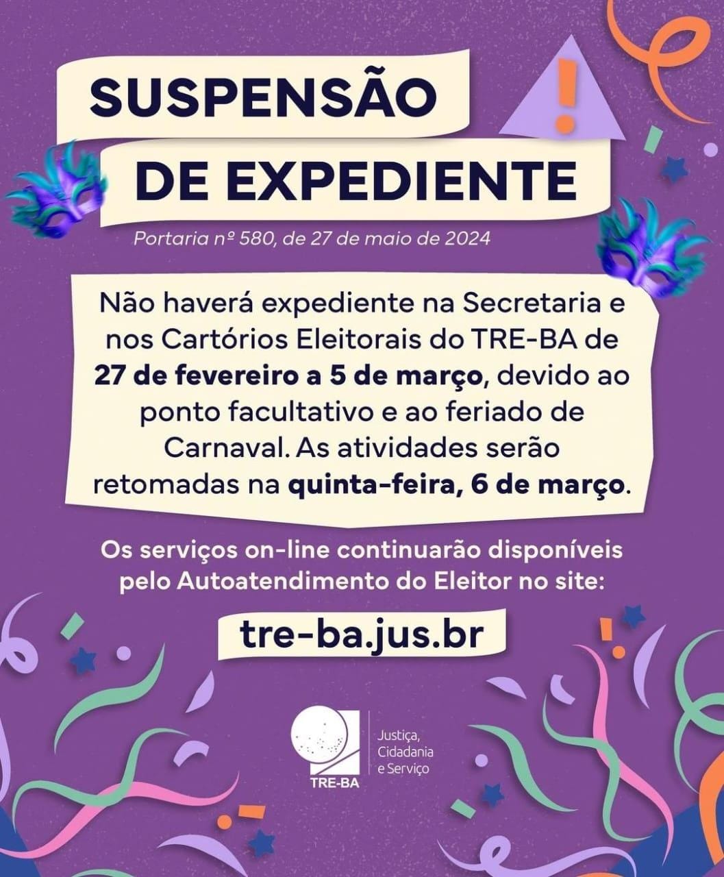 Cartório Eleitoral volta ao expediente normal amanhã, 7.