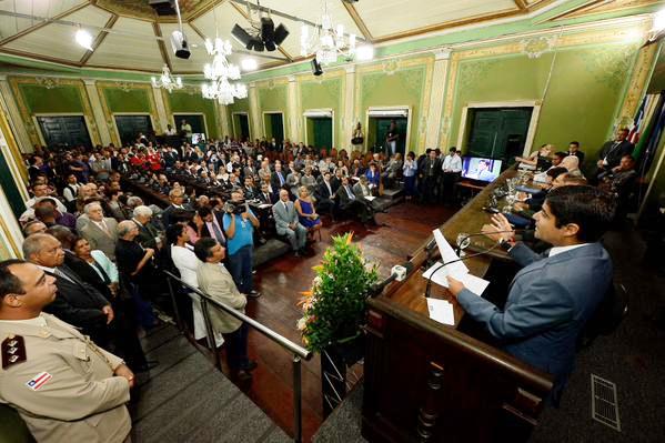 Prefeito de Salvador lê a mensagem do Executivo na abertura da sessão da Câmara