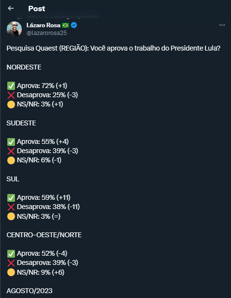 Pesquisa Quaest por região: Lula aumenta aprovação.