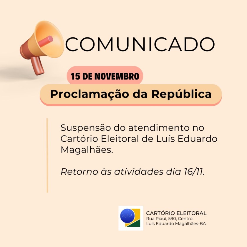 Cartório Eleitoral de Luís Eduardo fecha no feriado, mas reabre na quinta.