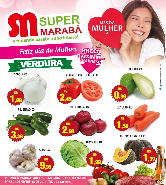 Dia de preços promocionais na verdura e legumes. Supermercado Marabá.